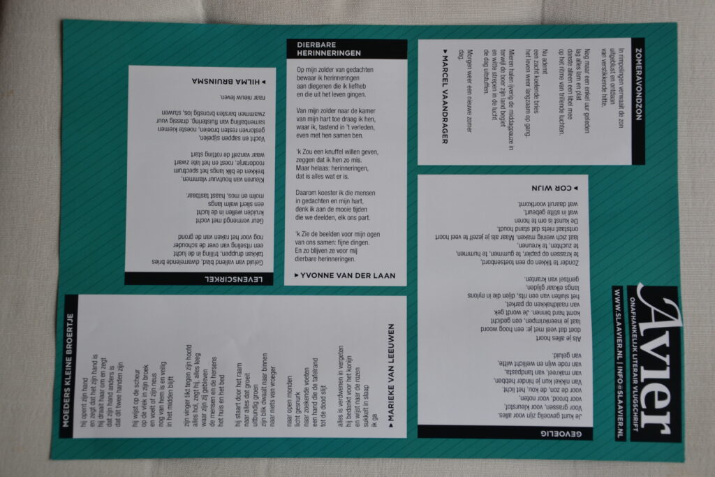 , in ‘Avier’ (onafhankelijk literair vlugschrift), Publicatie in herfstnummer 16, 2015.