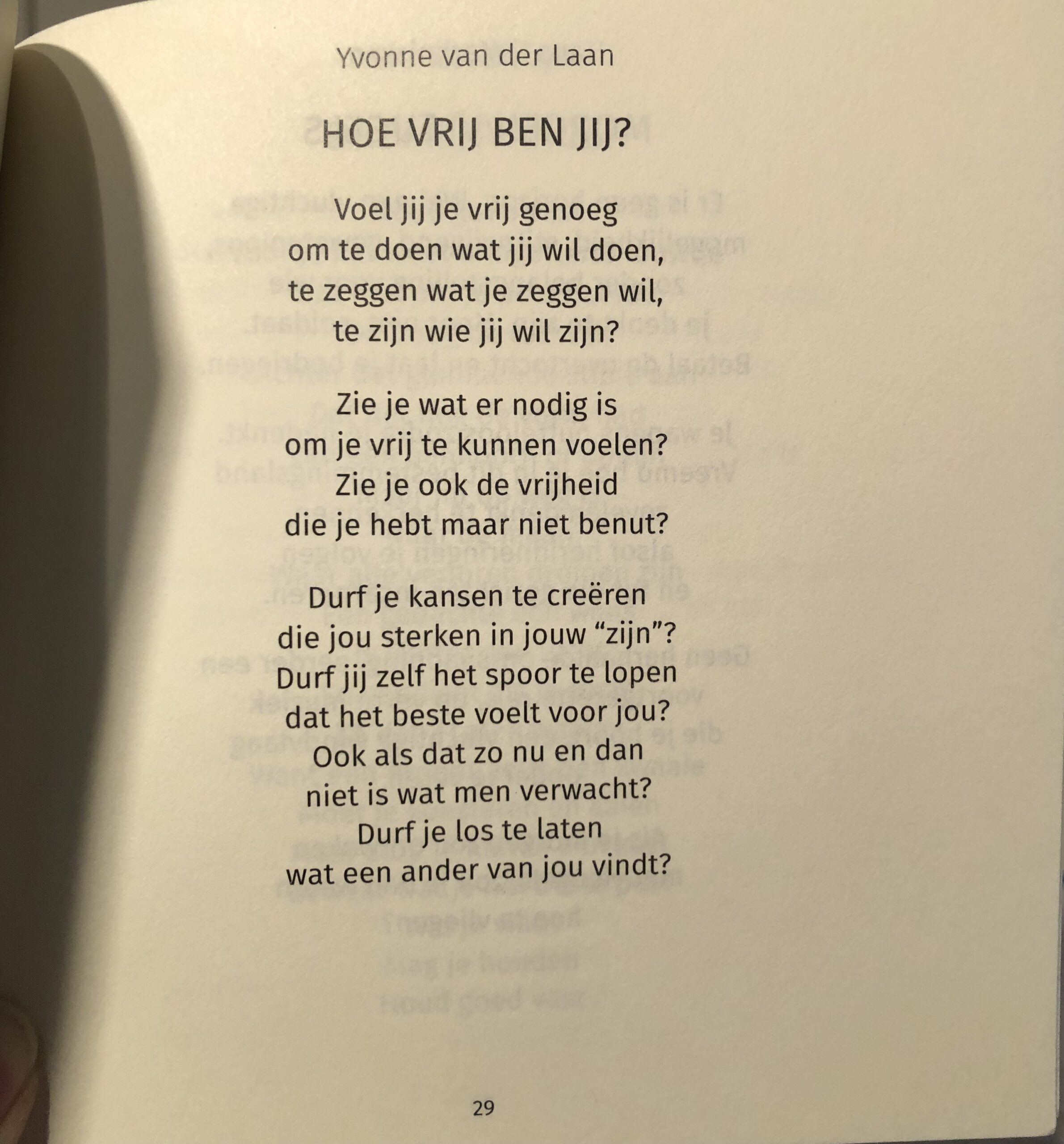 ‘Vrijheid’ biedt de lezer een mooie, afwisselende collectie gedichten. De ene keer is de poëzie in al zijn eenvoud ontroerend, de andere keer verbluffend door de aansprekende sfeer die wordt neergezet.