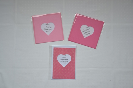 Gedessineerde dubbele kaart, of vierkante effen kaart met hartpassepartout. Diverse uitvoeringen.