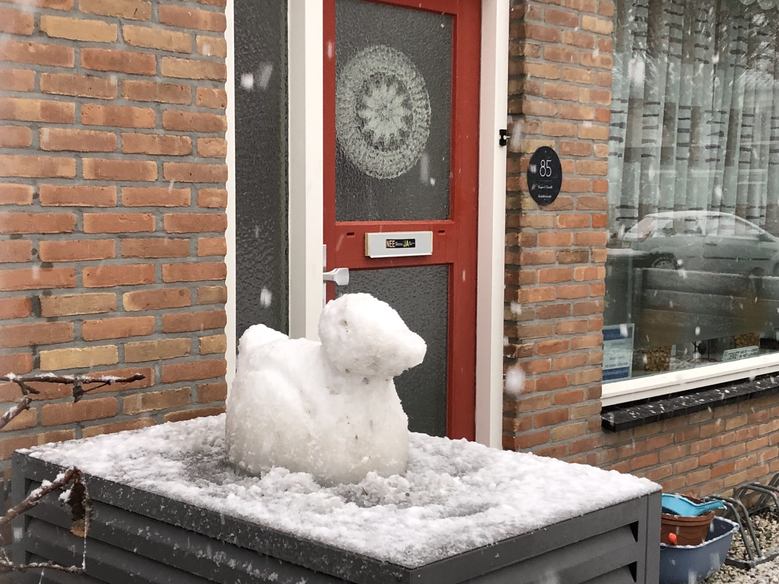 Tip: als je ook en sneeuwsculptuur wilt maken, hou de vorm dan eenvoudig: niet te veel losse/dunne delen, maar zo compact en aaneengesloten mogelijk.
