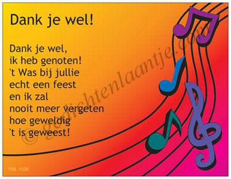 Gedichtkaart YML 1426: Bedankt! (muziek, feest)
