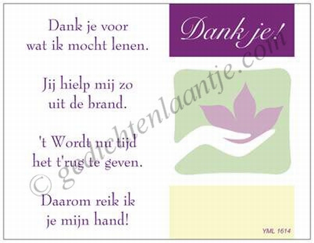 Gedichtkaart YML 1614: Dank je voor het lenen