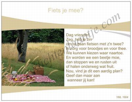 Gedichtkaart YML 1664: Fiets je mee?
