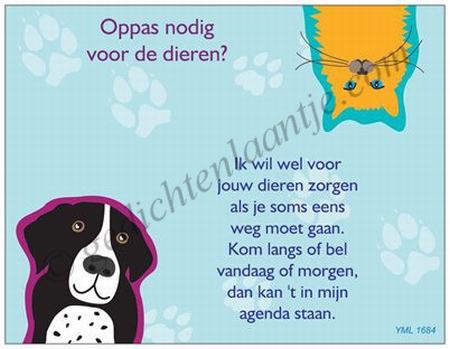 Gedichtkaart YML 1684: Oppas nodig voor de dieren? aantal