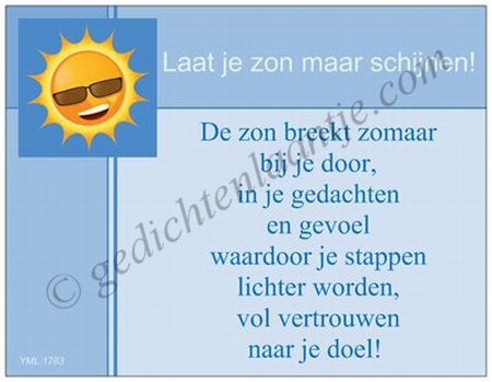 Gedichtkaart YML 1783: Laat je zon maar schijnen!