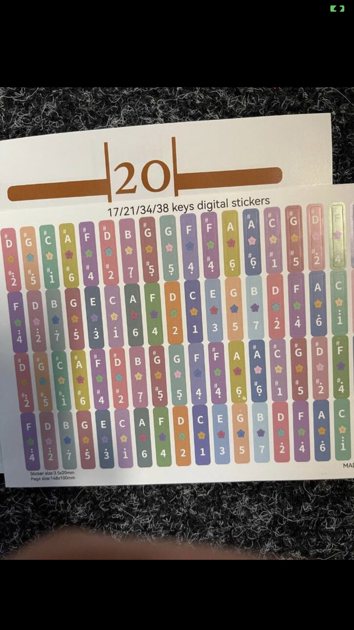 In doos, met stemhamer, doekje, klein boekje en duimdopjes.