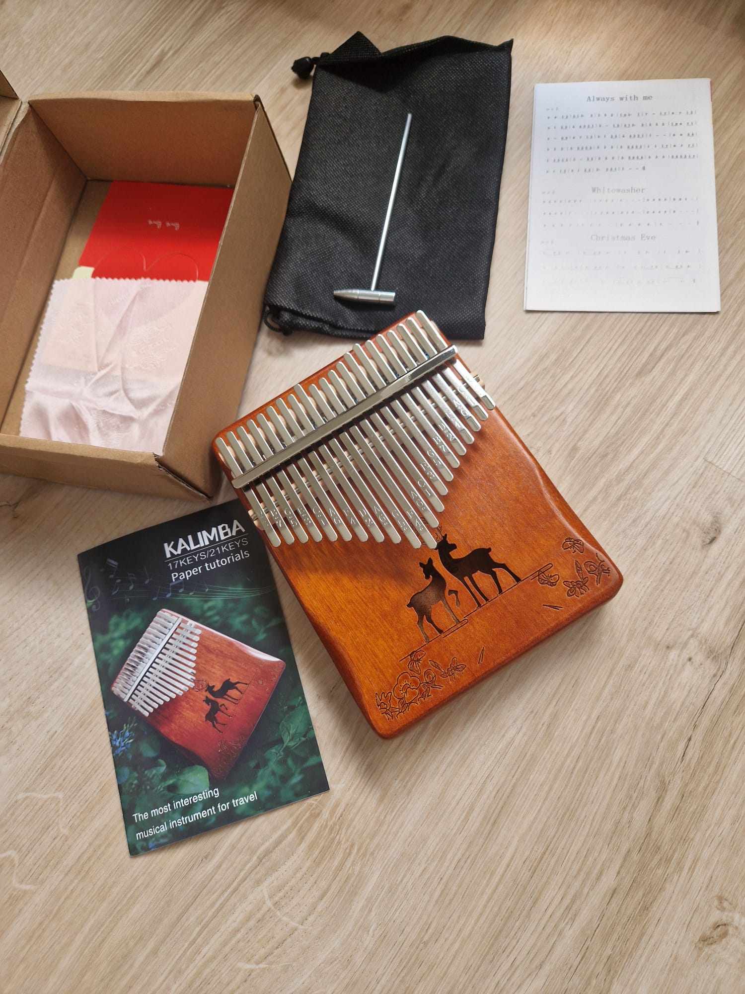 Bij aankoop van deze kalimba krijgt u de kalimba bladmuziek van ‘Vader Jacob’ erbij. Op deze kalimba kunt u namelijk, door de vier extra toetsen in het midden, ook de lage G (bim-bam-bom) spelen in dit liedje.