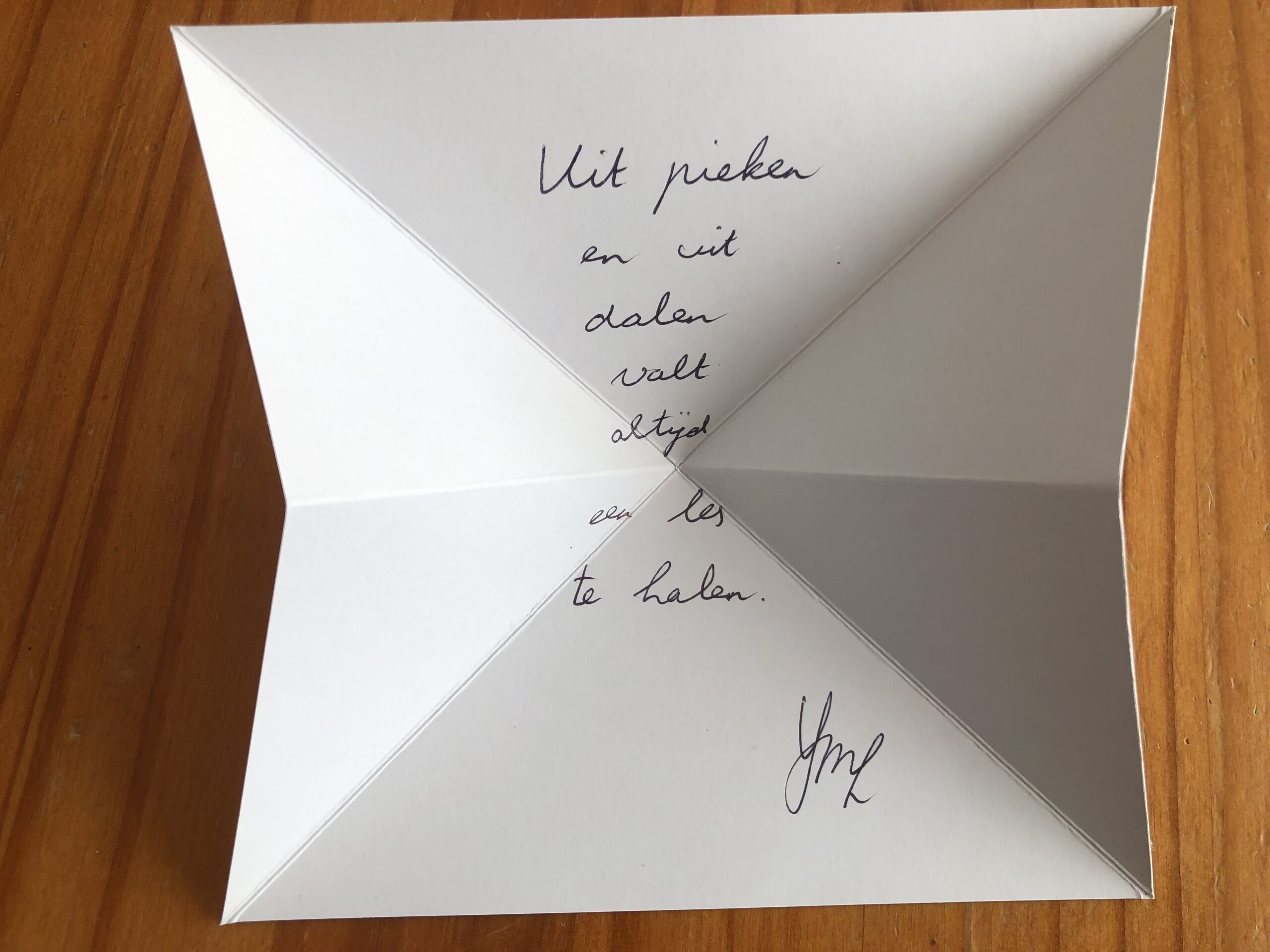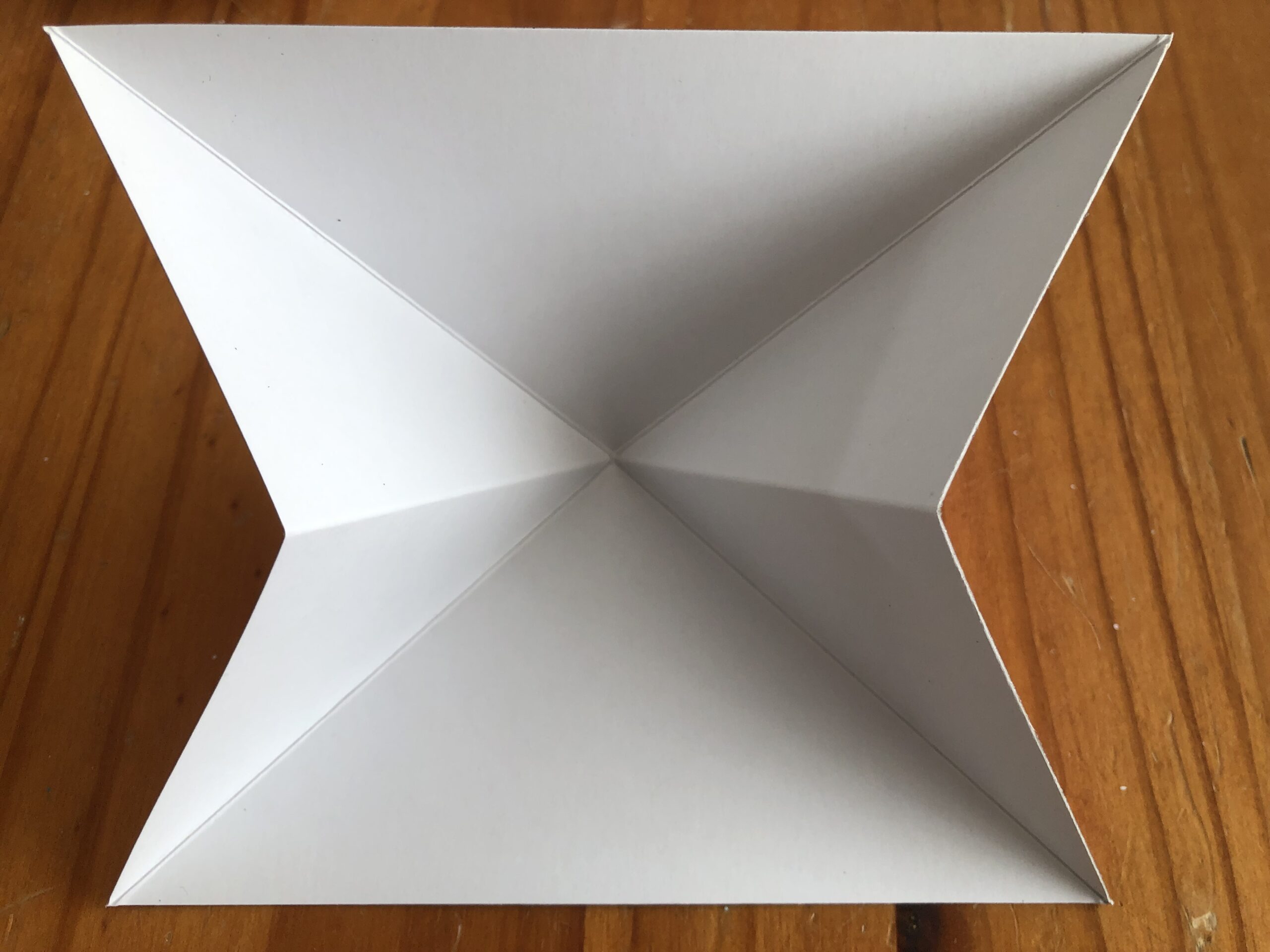 Piramidekaart: dubbele vouwkaart, piramidevorm, uitvouwbaar tot een vierkant.