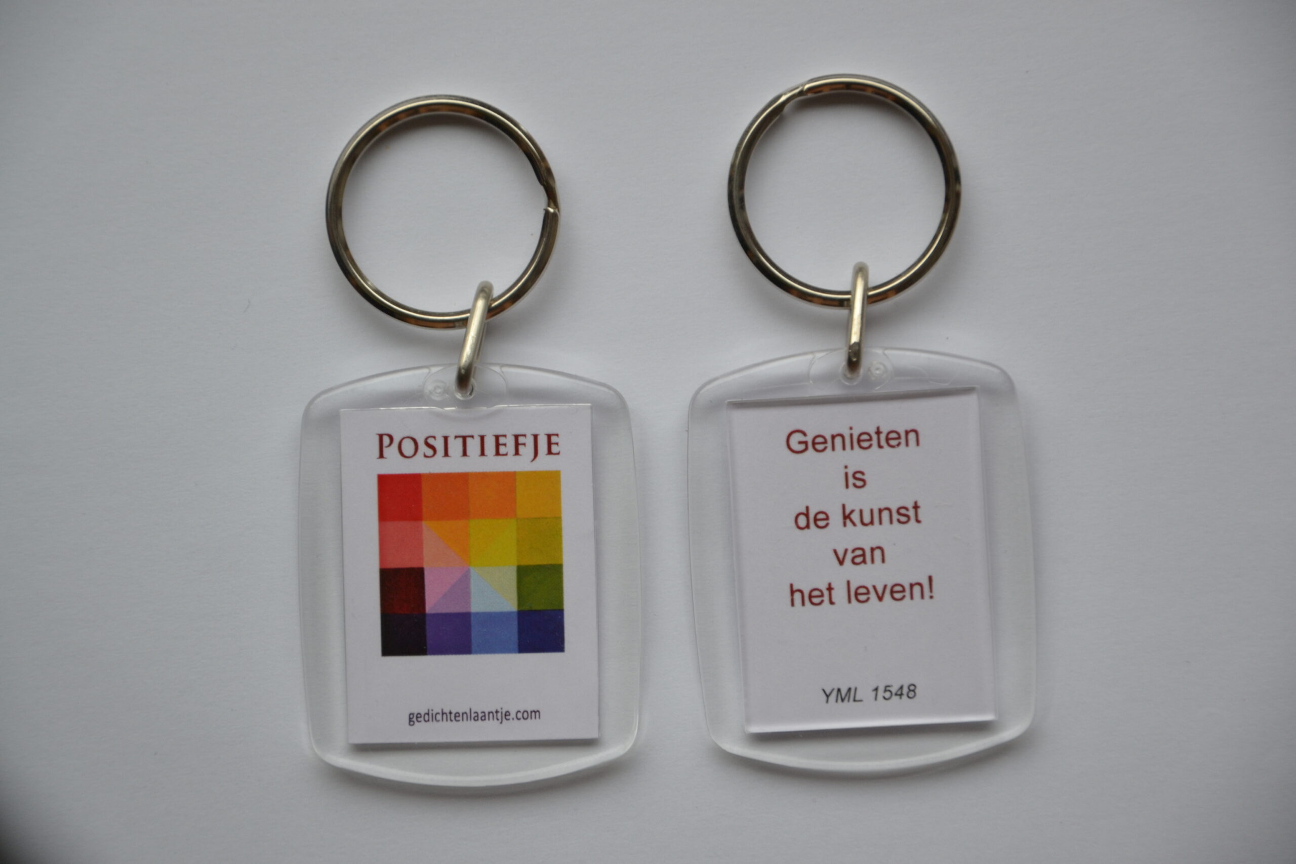 Positiefje sleutelhanger, met een tekst uit het boek ‘Positiefjes’ van auteur Yvonne van der Laan.