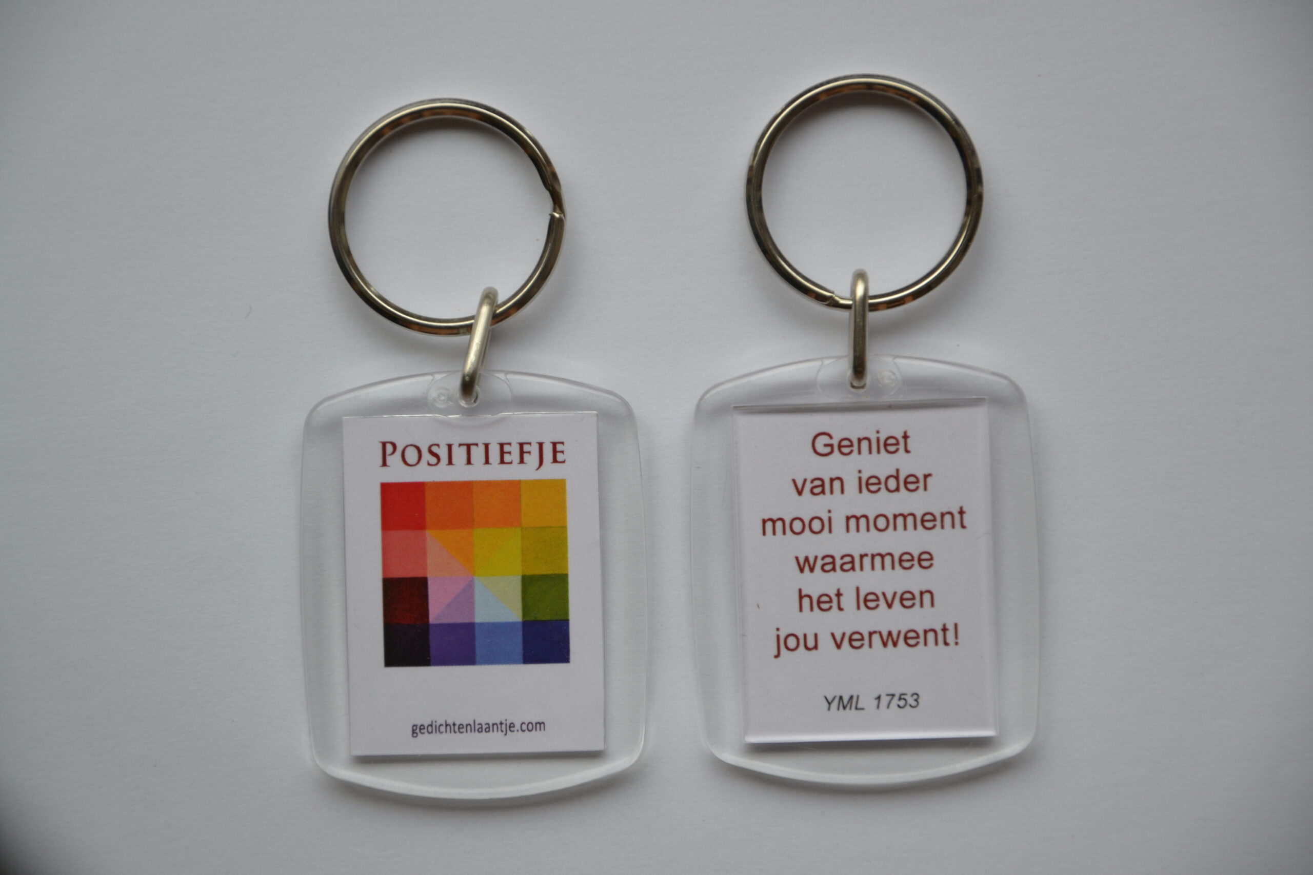Positiefje sleutelhanger, met tekst uit het boek ‘Positiefjes’ van auteur/inspirator Yvonne van der Laan.