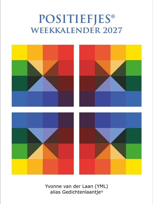 In augustus 2026 verschijnt de ‘Positiefjes weekkalender 2027’, met inspirerende teksten, spreuken, poëzie, illustraties en kunst van schrijfster/kunstenares Yvonne van der Laan.