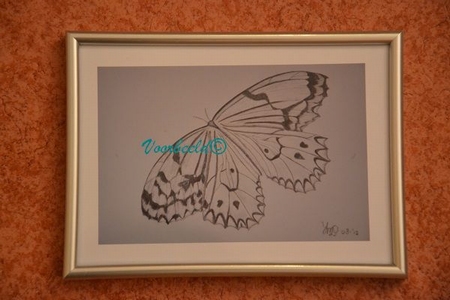 Print van houtskooltekening YML “Vlinder”, aug. 2012, in lijst 13×18 cm. Alleen ophalen!